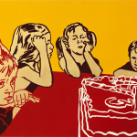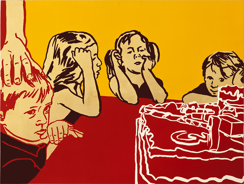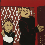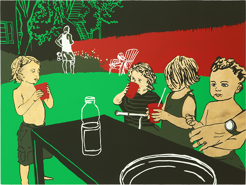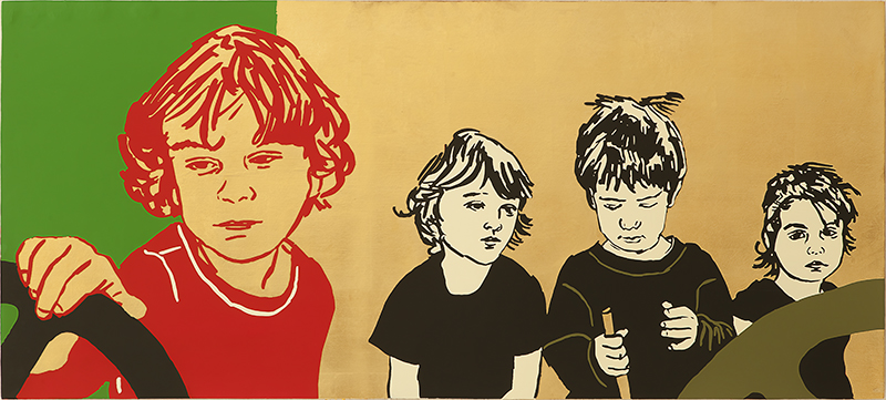 In the world of young children, dramatic play is a meaningful way for them to participate in the world by acting out roles they have observed, expressing their interests, and practicing being grown-ups. This series of spray-painted and gold-leafed drawings captures these intimate moments in time, offering an opportunity to consider the formative steps of our development as social beings. The addition of scenes featuring adults in similar situations acknowledges that our childhood experiences shape who we are as adults.