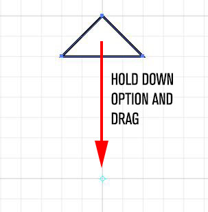 2. Make a triangle. At the top and middle of the 2×2 grid with the Pen Tool make a point, move to the right 2 small grid square and 2 down and make another point, move left 4 small grid square and click a point, finally click back on the original point.