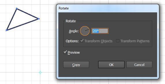 4. Release the Option Key and Mouse button and type 20 for the amount of degrees and click Copy