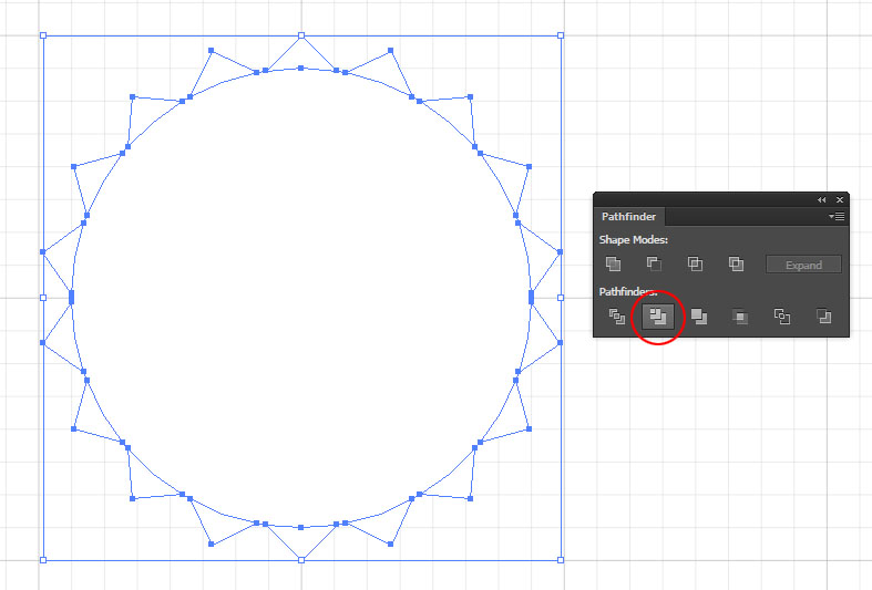 7. Select all of the shapes with the Black Arrow and click the Trim option on the Pathfinder Panel (WINDOW menu > PATHFINDER) This will trim out all of the shapes underneath the circle and make the bottom of each triangle rounded. Using the Trim Pathfinder will also change the stroke color to White and Group everything together. After you have performed the Trim function type D on your keyboard to get back to the default colors (Black Stroke, White fill) and go to the OBJECT menu > UNGROUP.