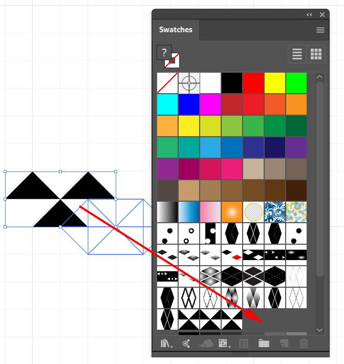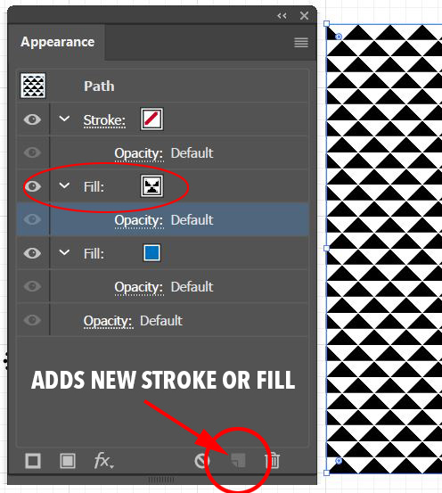 10. Select the shape you have just filled with the triangle pattern and in the Appearances Panel and click on the Fill area, then click on the new fill icon at the bottom. You have now created a second copy of the triangle pattern fill.