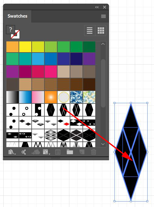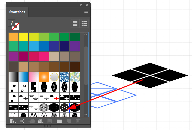 2. Open up the Swatches Panel and drag the swatch out of the panel and onto the artboard. This gives you a version of the pattern that you can modify and then return to the Swatches Panel as a completely new pattern.