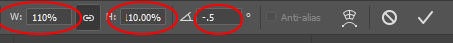 Go to the EDIT menu > FREE TRANSFORM and rotate the layer –.5 degrees and scale the layer 110% in both directions.