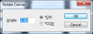 8. After drawing the line go to the IMAGE menu > IMAGE ROTATION > ARBITRARY… Photoshop will have automatically filled in the rotation angle with the angle of the ruler line. Click OK
