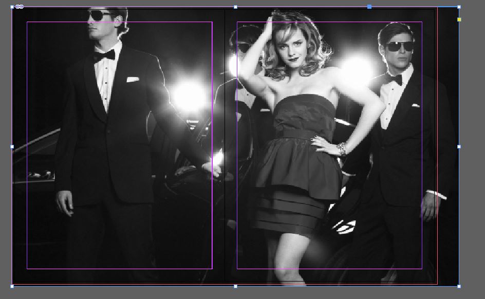 2. Zoom out and place the Emma Watson picture (link here) over top the entirety of the page 2 and 3 spread from bleed to bleed – trim the picture as necessary.