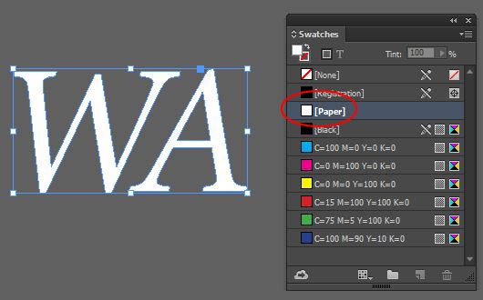 4. With the black arrow select the text box and go to the TYPE menu > CREATE OUTLINES. Your letters are no longer type, they are vector shapes describing the letterforms. Change the fill color to Paper (white)