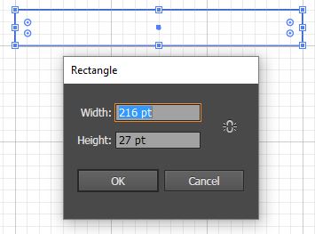 3. Draw a rectangle 3 inches wide, by 3/8″ high you can also click the rectangle tool on the screen and type in 216 pt wide by 27 pt high