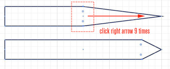 6. Select the two middle points (upper and lower) with the white arrow and hit the right arrow key 9 times