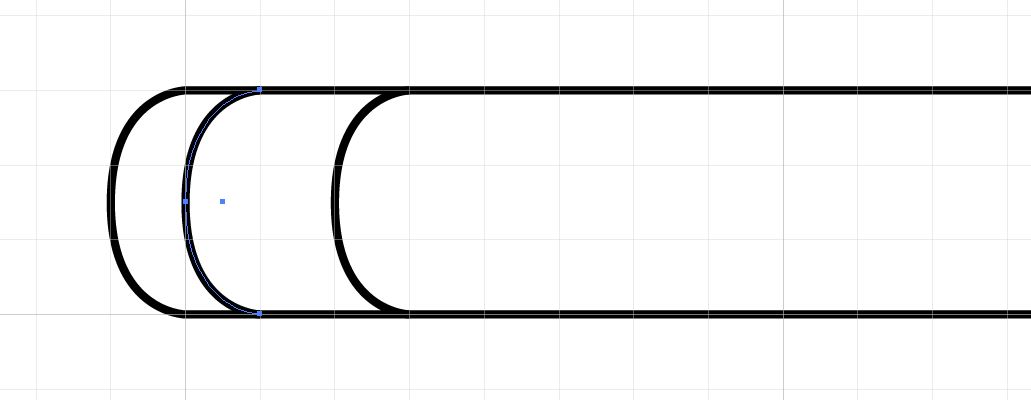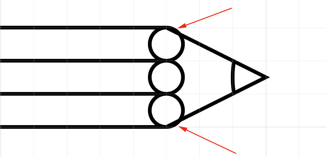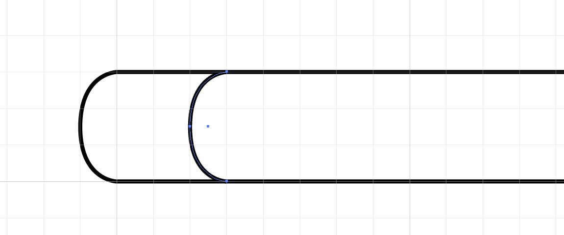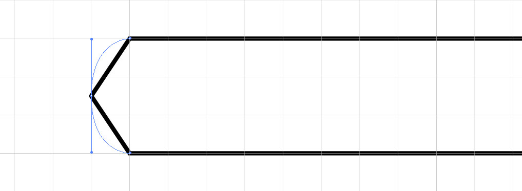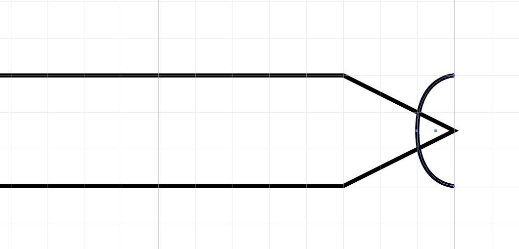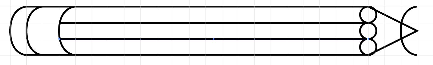 18. Zoom into the point of the pencil, select the parts of the upper and lower circle that extend beyond the point and delete them