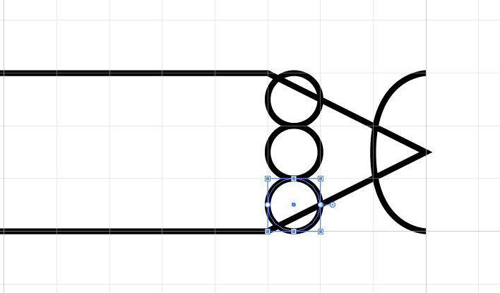 13. Select the Ellipse tool and draw a 3 circles stacked one above the other at the right hand side where the point begins