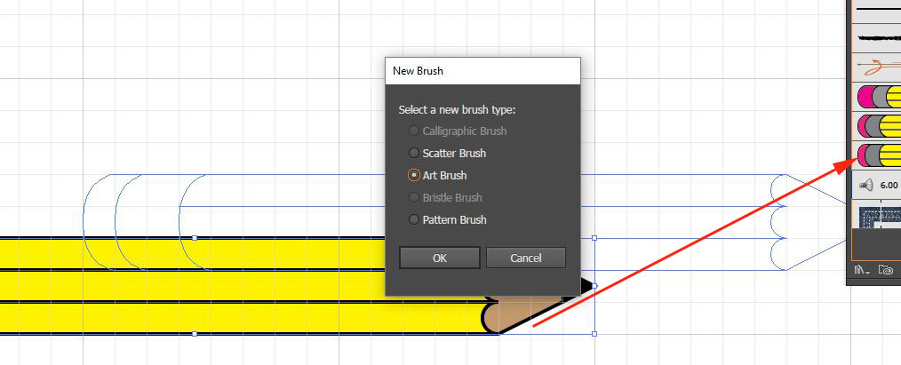 21. If you’ve made it this far and are feeling adventurous drag the pencil to the BRUSHES panel and make an art brush out of it.